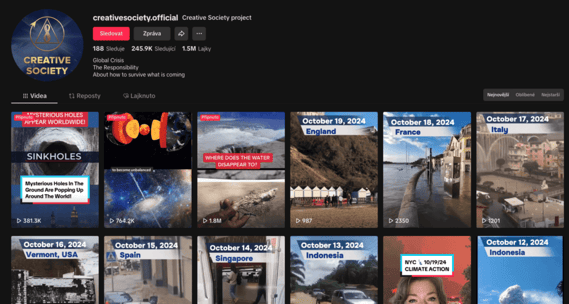 Projekt Tvořivá společnost (TS) má členy i příznivce po celé planetě. Na sociálních sítích šíří tito lidé nepravdivé informace o klimatu a tvrdí, že v roce 2036 přijde konec světa. Zastáncům projektu, jenž vznikl na popud ukrajinského hnutí AllatRa, se nedávno podařilo získat audienci u papeže Františka. Na Tvořivou společnost je také napojený lobbista registrovaný ve Spojených státech amerických. Aktivity TS i hnutí AllatRa jsme společně s kolegy z pěti zemí mapovali v rámci projektu Firehose of Falsehood.