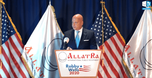 Jedním z amerických podporovatelů hnutí AllatRa je také Robby Wells, který se v listopadu bude ucházet o křeslo ve Sněmovně reprezentantů USA. Tento bývalý fotbalový trenér původem z Virginie se prezentuje jako zahraniční zpravodaj ruského státního média RT (či Russia Today) a věří tomu, že projekt Tvořivá společnost je jedinou záchranou světa.