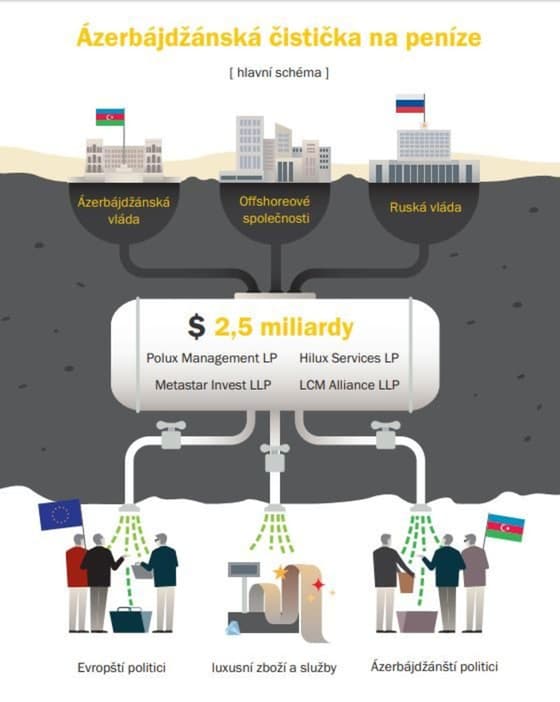 Podle německé policie měla Karin Strenz obdržet platbu ve výši 22 tisíc eur (přibližně půl milionu korun) z jedné z firem kolegy Eduarda Lintnera. Tomu měly během let 2008–2016 z Baku přijít celkem čtyři miliony eur (přibližně 100 milionů korun) na bankovní účty vedené v pobaltských zemích na britské schránkové firmy. Tento sofistikovaný systém praní špinavých peněz nazvaný „Ázerbájdžánská pračka“ odhalila v roce 2017 mezinárodní síť investigativních novinářů OCCRP (Organized Crime and Corruption Reporting Project). Investigace.cz, jež je jediným tuzemským členem této novinářské sítě, se na odhalení přímo podílela.