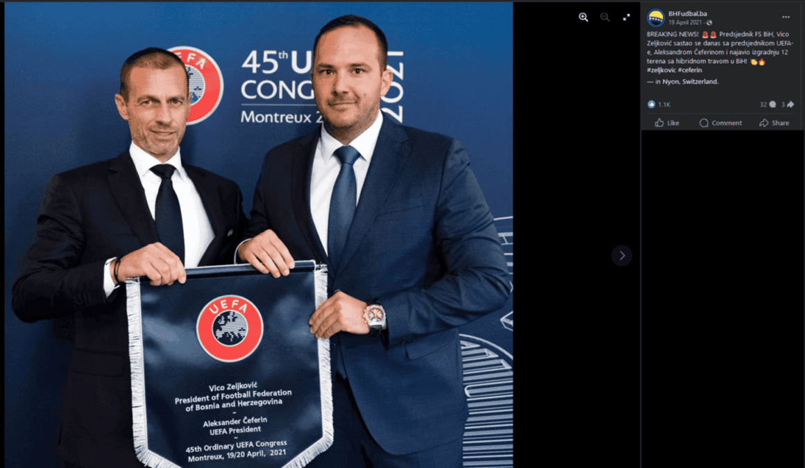 Fotbalová asociace Bosny a Hercegoviny měla v roce 2021 nabrat nový dech. Vico Zeljković, tehdy její čerstvě zvolený prezident, sliboval mohutné investice do stadionů, jejichž rekonstrukce měla být zárukou snadnějšího vstupu tamních fotbalových mužstev do evropských soutěží. Veřejnou zakázku na celý projekt ale provázely problémy už od jejího vyhlášení – příliš specificky nastavené požadavky vyvolávaly pochybnosti o nepodjatosti. Průtahy pak nastaly i při samotné realizaci, některé hrací plochy ještě stále nejsou dokončené. Jedním ze stavitelů je i česká firma, jejíž majitelé v minulosti spolupracovali se známým českým zbrojařem nebo s bývalým šéfem makedonských tajných služeb. Bosenskou fotbalovou asociaci nyní vyšetřuje tamní prokuratura.
