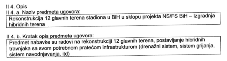 Součástí smlouvy s UEFA na projekt „Výstavba 12 hybridních hřišť a program jejich údržby – investiční projekt“ byla i specifikace způsobu finanční úhrady. UEFA souhlasila s tím, že projekt podpoří pod podmínkou, že na části jeho financování se budou podílet města, jejichž stadionů se rekonstrukce či výstavba týká. Smlouva, kterou mají novináři z bosenské televize N1 k dispozici, upřesňuje, jaké stadiony bude UEFA spolufinancovat z celkové částky v přepočtu více než 37 milionů korun. To se ale stane pouze v případě, že všechny místní samosprávy na každý stadion přispějí v přepočtu 5,8 milionů korun.