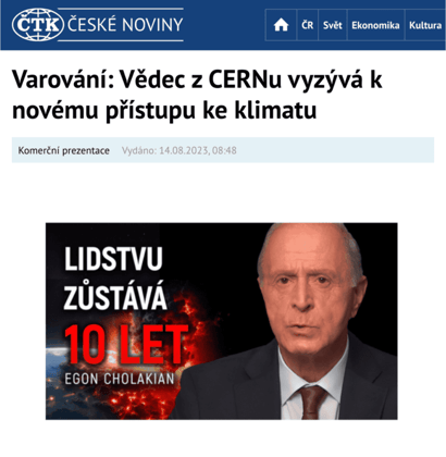 V srpnu 2023 publikovaly tiskovou zprávu týkající se klimatické rétoriky Tvořivé společnosti také Česká tisková kancelář a Deník.cz. V sekci zaplacených PR sdělení se tam objevil článek s varováním: „Lidstvu zůstává 10 let.“ Článek byl označen jako PR text, za který podle pravidel ČTK nese odpovědnost zadavatel. „Nicméně ani v případě komerčních sdělení by se neměly dostat na veřejnost články, které obsahují nepravdivé informace,“ uvedla ČTK na dotaz investigace.cz. „Bohužel uvedený příspěvek naším sítem nějakým způsobem prošel. Již jsme ho smazali.“