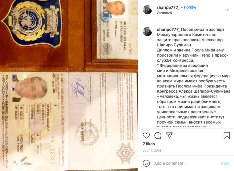 V září 2019 byl naopak v ázerbájdžánském Baku zatčen spolupracovník CIPDH Alakbarov Firdovsi, který se vydával za „generála“ (s použitím vojenské uniformy ve stylu CIPDH) a podvedl několik lidí, jimž sliboval prodej diplomatických pasů a „vojenských“ hodností.