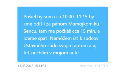 „Já, ani nikdo jiný nemůže odpovídat za komunikaci třetích osob, ani ji nijak ovlivnit. Vůbec nevím, o co v dané komunikaci mělo jít, neuskutečnilo se žádné setkání, které zřejmě naznačujete ve vašem emailu / sms. Kromě uvedeného jsem byl ode dne 13. 6. 2018 až do víkendu v důsledku těžké nemoci tchýně v Rimavské Sobotě (zemřela 26. 6. 2018). Nedá mi závěrem při upřímné úctě k práci investigativních novinářů nevyslovit již určitý údiv a pochybnost nad původem a důvěryhodností takových zpráv a informací,” reagoval Mojmír Mamojka na naše dotazy.