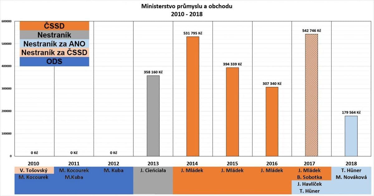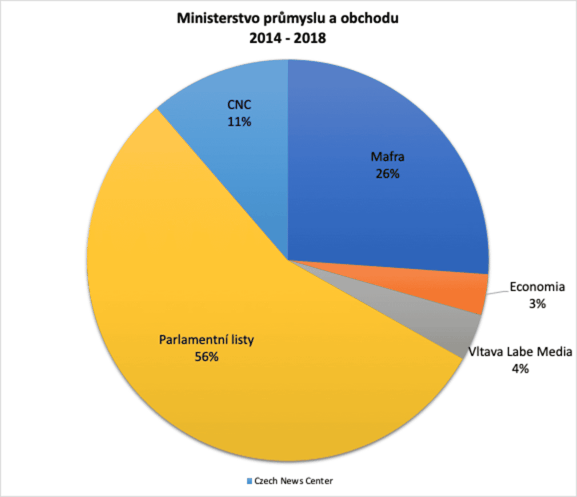 Zatímco ještě v roce 2014 ke své reklamě používalo různá média – rádio Impuls, deník E15, Hospodářské noviny, Deník a týdeník Euro –, v následujících dvou letech to byly pouze Parlamentní listy (v roce 2015 jim ministerstvo poslalo asi 387 tisíc, v roce 2016 zhruba 302 tisíc korun). Kromě průmyslu si reklamu na tomto serveru zaplatila v letech 2015 až 2017 také ministerstva školství a zdravotnictví. Tehdejší ředitel odboru komunikace resortu zdravotnictví Jan Štoll říká, že především šlo o „logickou reakci“ na fakt, že lídr hnutí ANO Andrej Babiš vlastnil vydavatelství Mafra (více v textu Kdo také platí Parlamentní listy).
