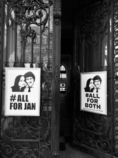 Spomienka na Jána a Martinu je všade, kde sa človek pozrie. Ľudia s odznakmi prechádzajúci okolo, fotky a horiace sviečky pred štátnymi budovami, transparenty pri cestách, či v Jánovej redakcii. Niekoľko dní po vražde sa stretávam s Petrom Bárdym. Prvé stretnutie je pomerne hektické. Budova Aktualít je obklopená sviečkami, fotkami a políciou. Nikto nemôže vstúpiť do redakcie bez špeciálneho povolenia. Ešte aj pred dverami stojí niekoľko policajtov a kontroluje ľudí. Všetci Jánovi kolegovia sú oblečení v čiernom. Iba biely odznak #allforjan na hrudiach narúša nevyžiadanú uniformitu ich garderóby. Jánov pracovný stôl ostal v podobe ako ho on sám zanechal v posledný deň. Tony papierov, instantná káva a rozčítaná kniha ‘Ndrangheta. Pribudli iba dve veci – sviečka a kytica bielych tulipánov. A celú túto čiernu atmosféru prebíja postava šéfredaktora. Dotknutého a zlomeného, ktorý však pozbieral zvyšky sily, odskakuje od jedného stola k druhému a zdvíha telefóny v intervale raz za 30 sekúnd. Keď sa ma opýta, koľko času potrebujem, odpovedám, koľko mi dáte. „Desať minút,“ znie nekompromisná odpoveď. Za tých desať minút, chtiac či nechtiac, strieda urgentné telefonické odpovede medzi políciou a médiami. Som si celkom istá, že z toho stretnutia si nebude pamätať ani sekundu.