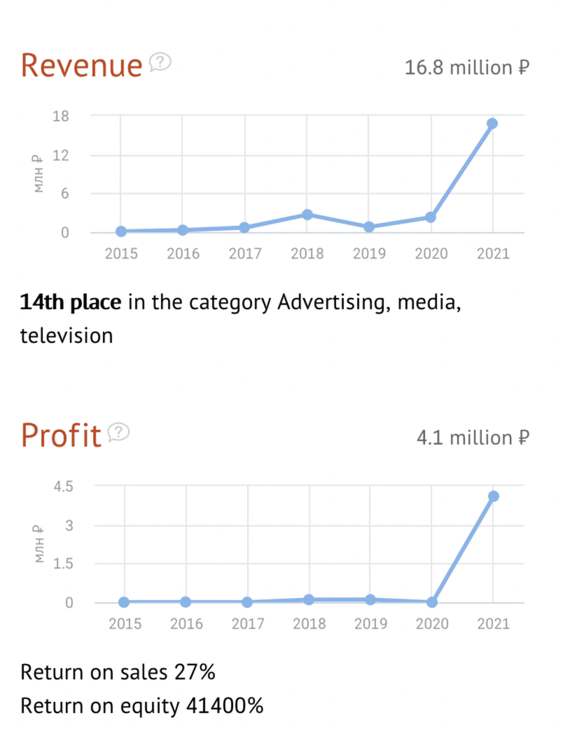 Podle serveru SBIS.ru se příjmy a zisky společnosti NewsFront ve srovnání s předchozími lety výrazně zvýšily. V loňském roce se zisk odhadoval na přibližně 63 000 eur, což je v přepočtu více než 1,5 milionu korun.