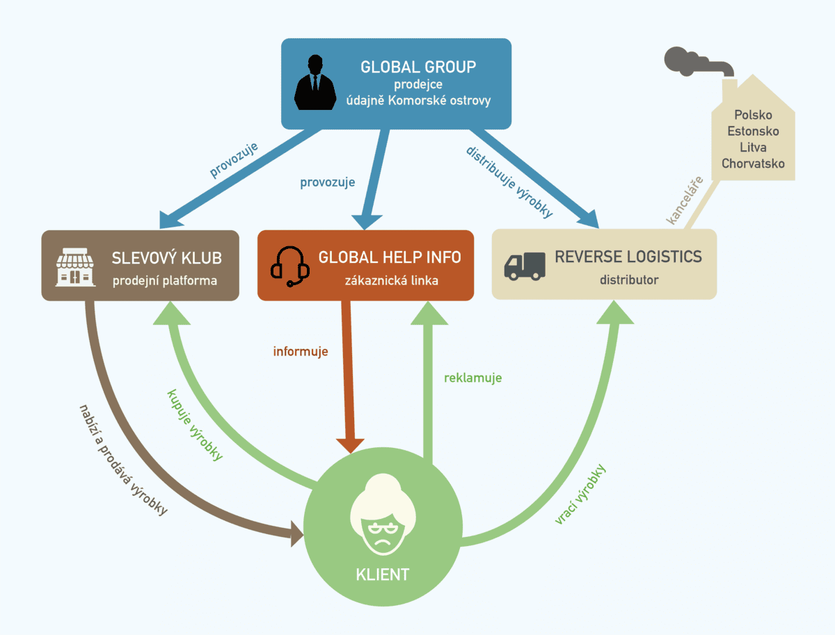 Jméno této společnosti je zmíněno na letácích přiložených k produktům Slevového klubu. Eva Nováková, ředitelka živnostenského odboru na pražském magistrátu, investigaci.cz napsala, že právě společnost Global Group se sídlem na Komorských ostrovech měla část klamavých reklam v českých časopisech objednávat.