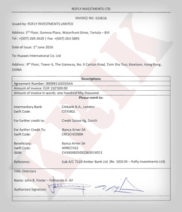 Pouhé tři dny předtím, než Jecl Rofly převzal, firma obdržela čtyři další poradenské smlouvy s Huaweiem, tentokrát ale neobvyklým způsobem – byly převedeny přímo na společnost Rofly ze skořápkové společnosti v Panamě patřící Ignjačevićovi, právníkovi s vazbami na Telekom.
