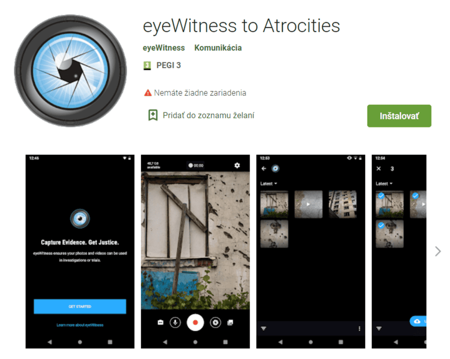 Aplikace funguje již od roku 2015 a momentálně je v databázi eyeWitness více než 15 000 záběrů z celého světa. V úterý 8. března neziskovka eyeWitness představila i ukrajinskou verzi, protože v posledních týdnech se zvýšil zájem o aplikaci v souvislosti právě s Ukrajinou.