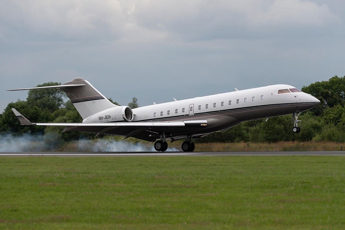 Bombardier Global 6000 soukromý tryskáč přistává na mezinárodním letišti v Manchestru (Anglie) /Autor fotografie: Russell Hart/Alamy
