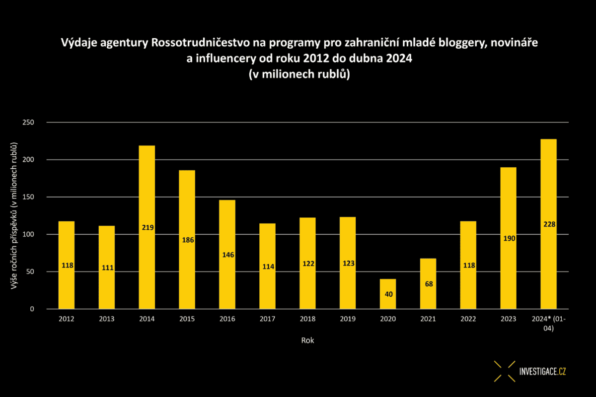 Více než polovina částky z letos vyhlášených tendrů, 130 milionů rublů (33 milionů korun), je určena pro program Nová generace, z něhož jsou hrazeny cesty do Ruska mladým „představitelům společenských a politických kruhů“ ze zahraničí. Podle popisu na stránkách ruského rejstříku veřejných smluv přispívají tyto návštěvy „k objektivnímu vnímání vnitřních proměn ruské společnosti ve světě“.