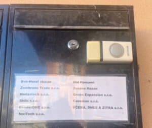 Části budovy poškodily povodně v roce 2024. Muž pracující na opravě budovy tvrdil, že Hazana zná. Nevěděl však, kde se nachází, a o společnostech nechtěl hovořit. Na poštovní schránce byl seznam firem, z nichž některé patřily Hazanovi, jiné jeho spolupracovníkům, další s ním neměly nic společného. Prostřednictvím trojice těchto společností Hazan několik let dodával služby řecké společnosti Intellexa, ale i dalším firmám z konsorcia. Jedná se o Zambrano Trade, s. r. o., Hadastech, s. r. o., a Shilo, s. r. o., založené v letech 2019, 2020 a 2021.