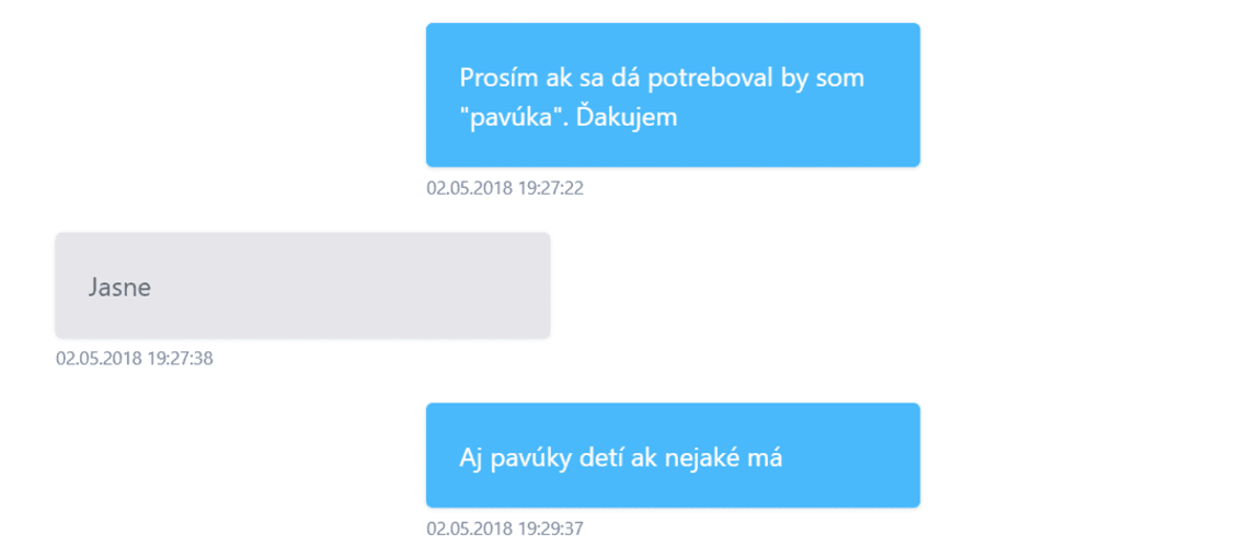 „Takže máš dalšího ‚bimbase‘ do sbírky :-D :-D :-D. Jsi si jistý, že ho chceš vidět? Upozorňuju tě, že OŠKLIVĚJŠÍHO A NECHUTNĚJŠÍHO JSEM V ŽIVOTĚ NEVIDĚLA. Normálně se mi udělalo zle. :-D :-D :-D.“