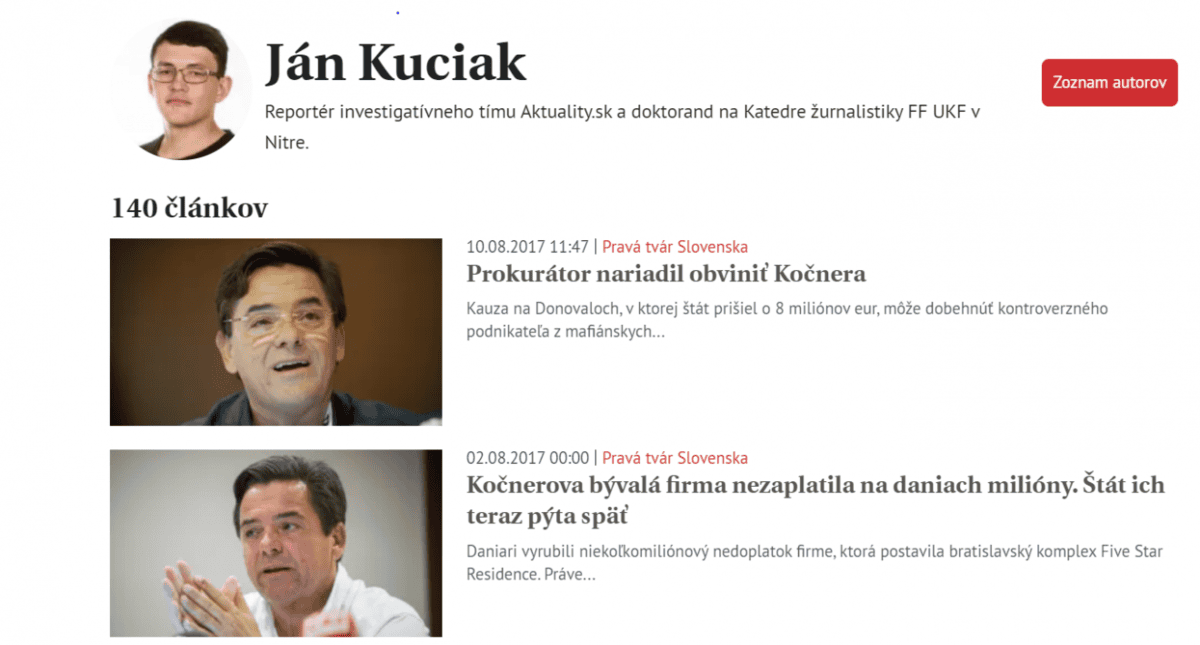 Kuciakovy vlohy pro tuto práci rychle odhalili jeho kolegové. Na podzim 2015 dostal nabídku, aby se přidal ke vznikajícímu investigativnímu týmu portálu Aktuality.sk.
