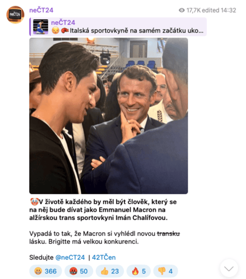 | @neCT24 | 25 800 | 13 900 | 11 900 | Telegramový účet názorového deníku https://42tcen.com/. Server neuvádí žádné údaje o svém provozovateli. Podle některých analýz se jedná o nástupce serveru Sputnik News v České republice. |