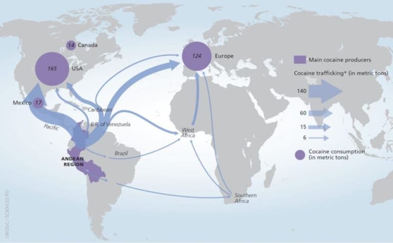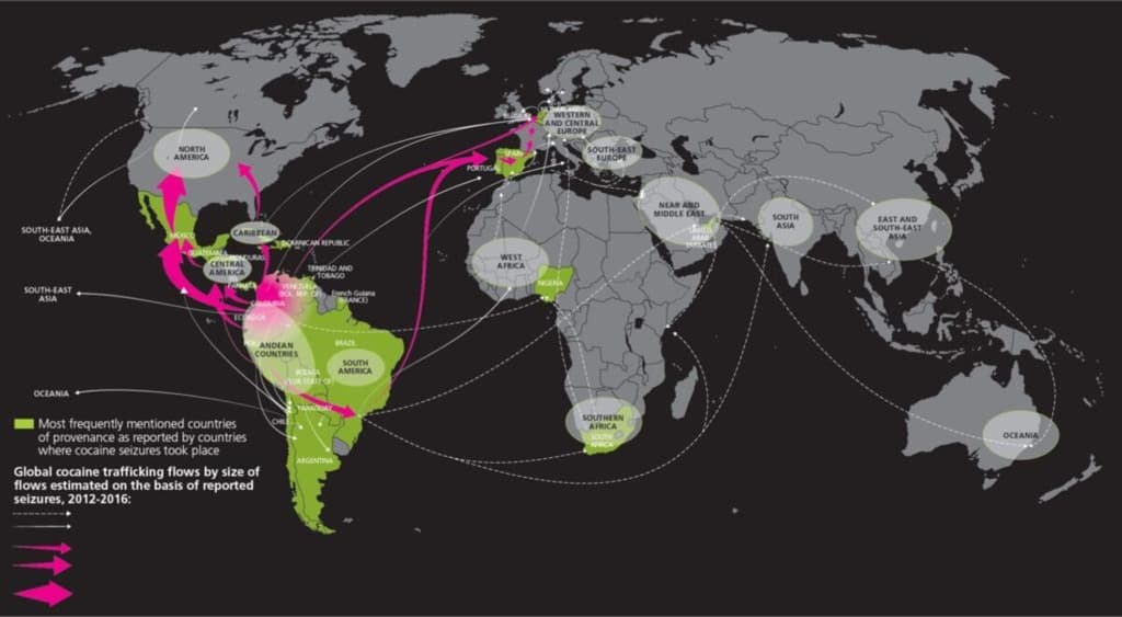 Autorka článku: Nina Kodhajová; Autor úvodní grafiky: Tok celosvětového obchodu s kokainem, 2012–2016: UNODC;