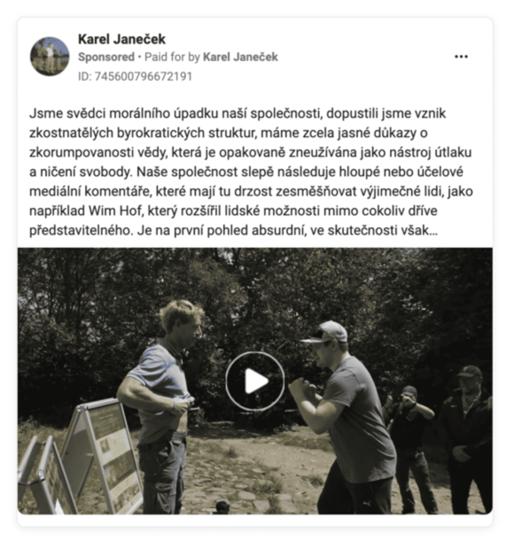 Absolutním vítězem v objemu peněz vložených na propagaci placeného postu na Facebooku a Instagramu je sice stále Tomáš Březina, hned za ním se ovšem objevil Karel Janeček. Ten investoval do propagace své kampaně na Facebooku za jeden měsíc skoro tři čtvrtě milionu korun, tedy přibližně tolik, co Andrej Babiš nebo Petr Pavel za předešlého čtvrt roku. Ve svých postech se Janeček mimo jiné poměrně často věnuje sportu a své fyzické kondici.