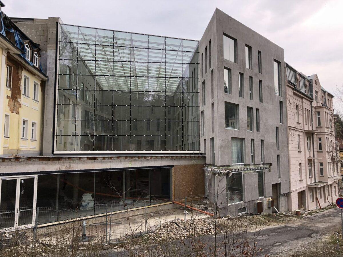 Hotel propojující pod luxusní frančízou Vichy Celeste celý blok domů měl být podle plánu dokončen v červnu 2019. Měsíc před tímto datem se ale o projektu dá mluvit jako o lepší hrubé stavbě. Podle slov kolem procházejících pravidelných návštěvníků Mariánských Lázní budova vypadá několik posledních let pořád stejně, žádného pokroku ve výstavbě ani pracujících dělníků na stavbě si nevšimli. Plánovaný hotel Evropa je tak v současnosti opuštěné staveniště.
