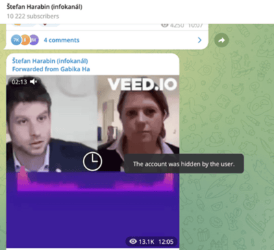Jak informovali naši kolegové z ICJK, nejúspěšnějšími sdíleči falešného videa se stali dva politici: bývalý šéf Nejvyššího soudu a exministr Štefan Harabin a někdejší poslanec Peter Marček. Oba v minulosti sdíleli silně prokremelské názory. Ve stejné době, kdy se falešné video s novinářkou Tódovou a lídrem PS Šimečkou začalo šířit slovenskými sociálními médii, hovořil o manipulaci slovenských voleb i šéf ruské tajné služby Sergej Naryškin. Během dvoudenního předvolebního moratoria obvinil Spojené státy z vměšování se do voleb. Stejný narativ prezentoval následující den v ruské státní televizi také Štefan Harabin.