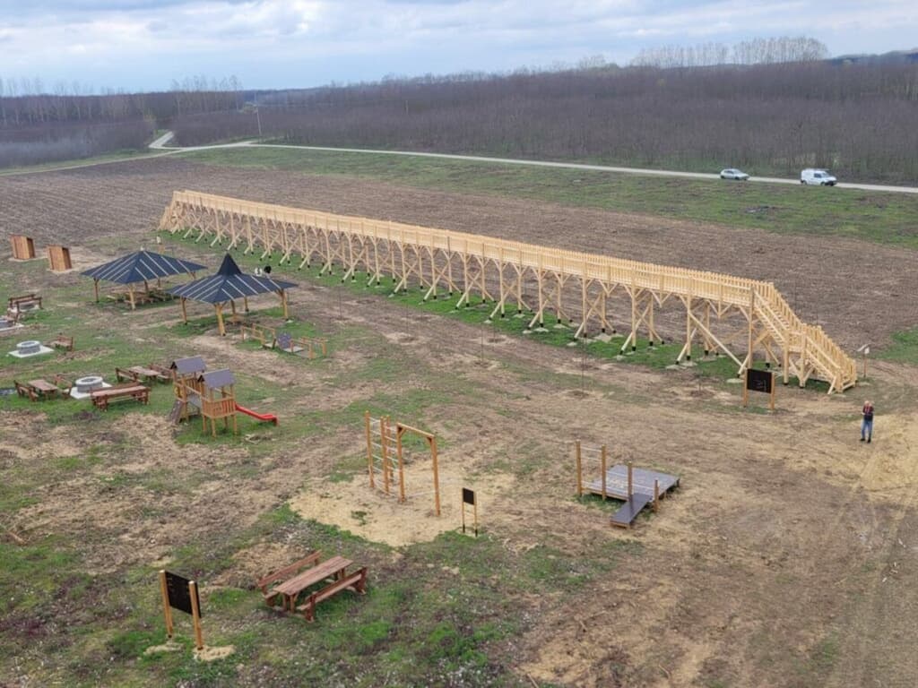 Podobně jako park pro cyklisty dopadla i další maďarská atrakce. Jak zjistili novináři z Átlátszó, starosta města Nyírmártonfalva získal na projekt vybudování 50 metrů dlouhého chodníku v korunách stromů dotaci ve výši 166 tisíc eur (necelé 4 miliony korun). Při stavbě chodníku byl ale les, který jej měl obklopovat, bohužel vykácen, takže místo procházky baldachýnem z větví a listů mohou návštěvníci nyní chodit po vyvýšené konstrukci s výhledem na holinu plnou pařezů.
